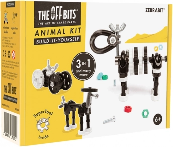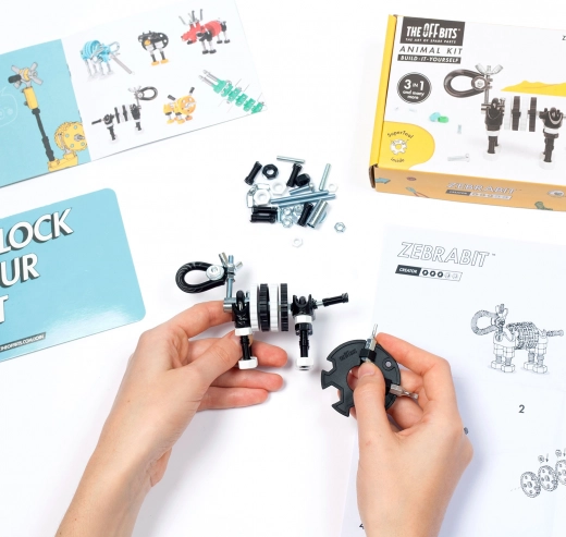 Le kit The OffBits ZebraBit est un ensemble audacieux et stylé, rempli de vis, d’écrous et de pièces moulées, offrant des heures de jeu créatif aux enfants comme aux adultes. Construisez ZebraBit, PoodleBit, CooperBit et bien d’autres créations uniques selon votre imagination.