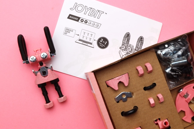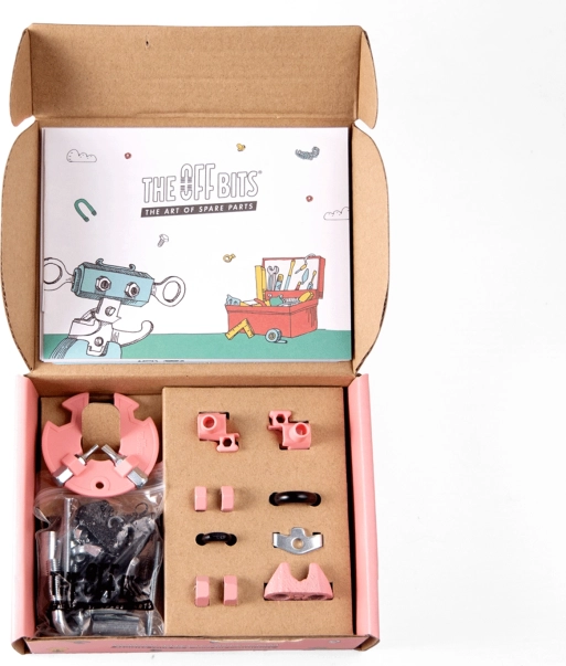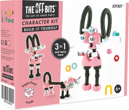JoyBit de la collection THE OFFBITS est un kit ludique qui transforme de simples vis et écrous en personnages robotiques uniques. Avec un seul set, assemblez au minimum 3 modèles (par ex. JoyBit, AstroBit ou un petit compagnon) et, grâce à la combinaison de pièces en plastique et en métal et à l’outil SuperTool inclus, créez aussi vos propres inventions originales.