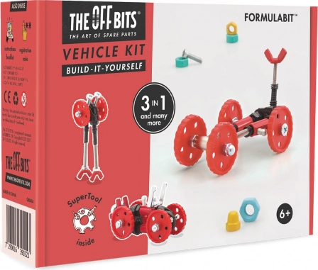 Le kit The OffBits FormuleBit est un ensemble ludique et éducatif qui soutient les compétences STEAM – science, technologie, ingénierie, art et mathématiques. Grâce aux connecteurs astucieux et au set de roues, il est facile de construire et de reconstruire des modèles, puis de créer ses propres inventions originales.
