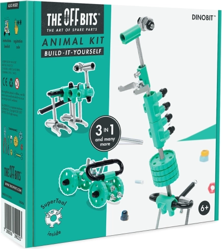 Le kit The OffBits DinoBit apporte un assemblage ludique avec des écrous colorés, des vis et des pièces moulées. Construisez le DinosaureBit, le bébé dinosaureBit ou la voitureBit 4x4 – puis laissez libre cours à votre imagination pour créer d’autres inventions uniques. Axé sur le STEAM, il aide les enfants à progresser en science, technologie, ingénierie, art et mathématiques.
