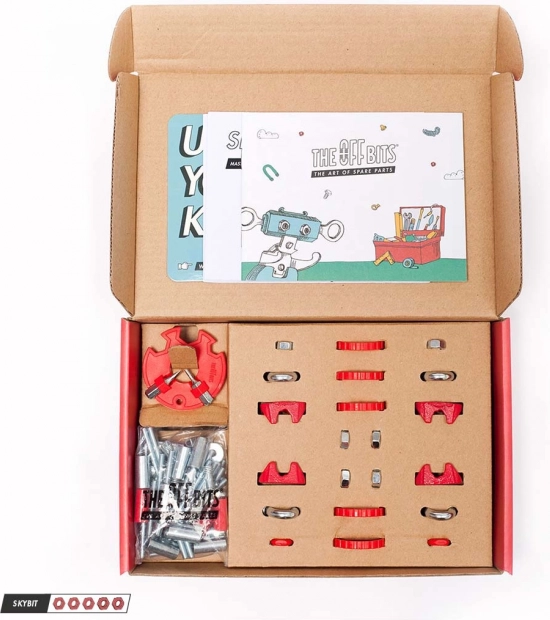 Le coffret comprend des outils pour un assemblage facile et des pièces que vous pouvez combiner avec des objets du quotidien (carton, vis, etc.). Créez des inventions originales, étendez vos modèles et amusez-vous avec une infinité d’idées.
