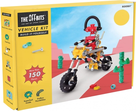 RiderBit de The OffBits est un kit de construction ludique et éducatif grâce auquel les enfants peuvent assembler un robot roulant à moto et d’autres modèles. La boîte contient plus de 200 pièces de qualité, un jeu de roues et des éléments de connexion ingénieux qui ouvrent la porte à des idées originales et à l’expérimentation.