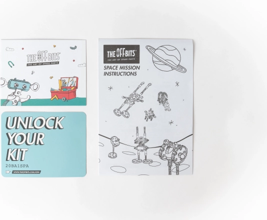 Mission spatiale de The OffBits est un kit créatif qui permet aux enfants d’explorer leur imagination ainsi que la pensée technique. Grâce à plus de 150 pièces et aux outils fournis, construisez facilement trois modèles recommandés et de nombreuses autres structures originales. Les éléments sont conçus pour être assemblés et combinés à répétition.