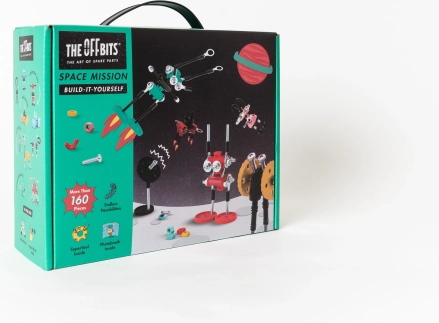 Partez pour un voyage de découverte dans la galaxie avec le kit de construction The OffBits Mission spatiale. La boîte contient plus de 150 écrous colorés, vis et pièces moulées pour construire trois modèles principaux et une infinité de créations personnelles. Des outils sont inclus pour un assemblage facile. Le set développe la créativité, la motricité fine, la pensée logique et soutient les compétences STEAM (science, technologie, ingénierie, art, mathématiques).