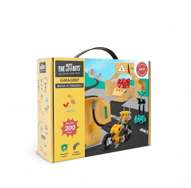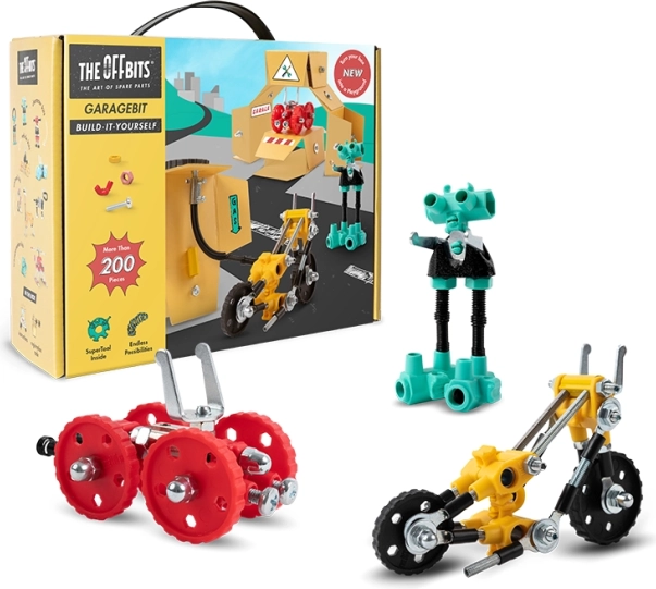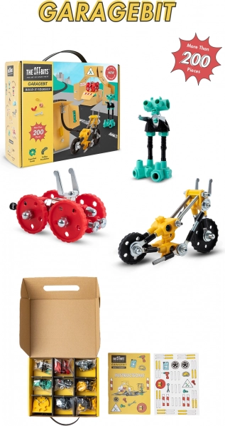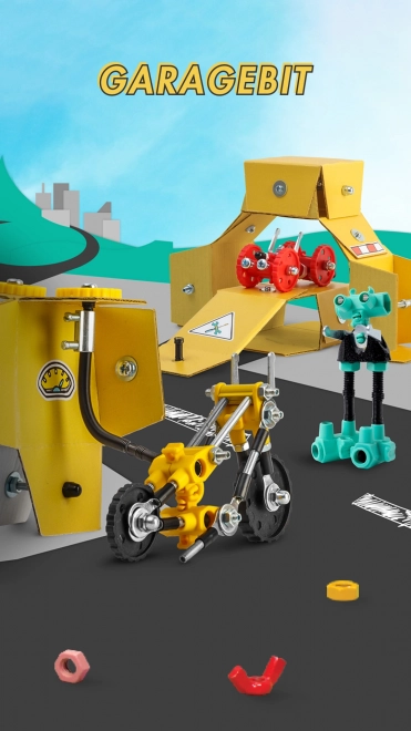 Gardez vos véhicules en parfait état avec GarageBit, qui comprend des écrous colorés, des vis, des pièces moulées et des autocollants. Cet ensemble ne se contente pas de faire partie du jeu, il devient un garage pleinement fonctionnel, une station-service et un atelier de réparation. Stimulez votre créativité et votre imagination en créant trois modèles et bien d’autres selon vos idées.