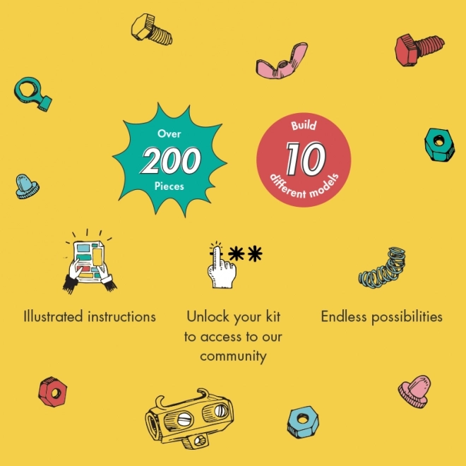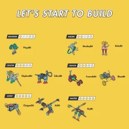 Ce kit familial est conçu pour offrir un divertissement sans fin pour toute la famille. Il est parfait pour des activités de groupe, où toutes les générations peuvent participer. Grâce à son contenu varié, au moins dix modèles peuvent être créés directement à partir de la boîte. Les jouets OffBits favorisent le développement de la motricité fine, de la perception spatiale, de la résolution de problèmes et soutiennent le développement dans les domaines de la science, de la technologie, de l'ingénierie, de l'art et des mathématiques.