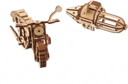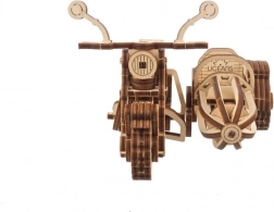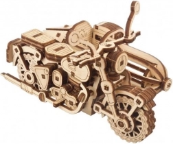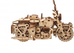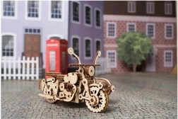 Assemblez et mettez la moto en action grâce à une ingénieuse construction d’engrenages et d’éléments élastiques – le tout proprement, uniquement en bois.