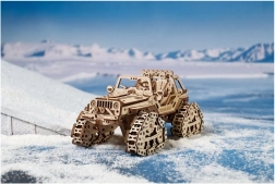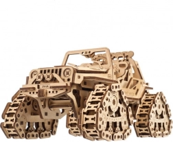 Plongez dans l’univers de la mécanique fine et découvrez le véhicule tout-terrain à chenilles UGEARS, qui combine à merveille ingénierie ludique et beauté artisanale du bois naturel. La propulsion est assurée par un moteur à élastique avec mécanisme à cliquet, avec sélection entre D (Drive), S (Sport) et P (Parking), et la stabilité de marche est garantie par un pendule arrière. Le capot ouvrant révèle le « moteur », la cabine ouverte renforce le réalisme, et les chenilles de style Mattracks/Rubtrack transforment le modèle en véritable off-road.