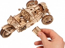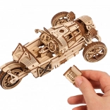 Assemblez l’emblématique tricycle UGEARS UGR‑S à partir de 457 pièces finement découpées et profitez de sa mécanique fonctionnelle. Grâce au moteur à ressort et à la transmission par chaîne, le modèle parcourt jusqu’à 4 mètres, il est dirigeable et séduit par ses pistons mobiles, ses capots ouvrants et sa clé de remontage amovible. Assemblage sans colle, niveau avancé et temps de construction d’environ 8 heures en font un excellent projet pour ados et adultes.