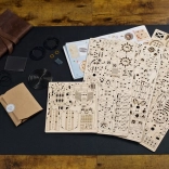 L’assemblage se fait sans colle: détachez simplement les pièces en bois de qualité des planches prédécoupées, ébavurez et clipsez. La boîte contient tout le nécessaire: papier abrasif, cire pour un fonctionnement fluide des engrenages, et un manuel illustré en 11 langues. Des détails astucieux comme la clé de remontage amovible, les capots ouvrants et la gravure laser font de ce modèle un superbe projet de week‑end et une décoration captivante.