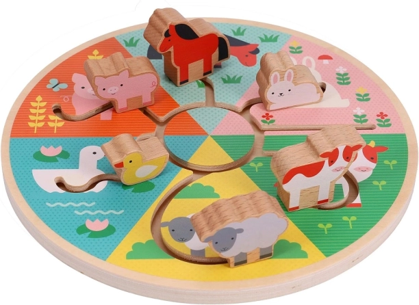 Dans la prairie verte, un petit cheval broute paisiblement tandis qu'un canard barbote parmi les nénuphars en fleurs. Aidez les animaux comme la vache à retrouver leur maison dans ce labyrinthe étonnant, qui développe les capacités psychomotrices des enfants. Ce jouet :