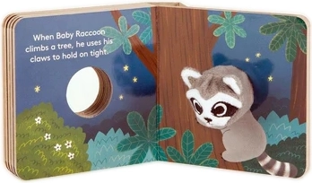 Partez pour une aventure en forêt avec le petit raton laveur, qui se réveille quand le soleil se couche. Préparez-vous pour un voyage rempli de noisettes et de délicieuses myrtilles. Le livre contient une histoire originale sur quatorze pages, conçue pour encourager l’imagination et la communication des enfants.