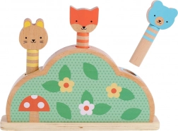 Insérer les figurines dans les ouvertures et les presser renforce la coordination œil–main, la préhension et la concentration dès la première année.