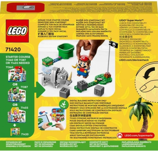 Découvrez l'ensemble d'extension pour les fans de LEGO Super Mario, qui offre de nouvelles possibilités de divertissement avec le Rhinocéros Rambi. Lors du passage de Rambi, il attaque les rochers et crée des effets sonores sur les figurines interactives. Un kit de démarrage 71360, 71387 ou 71403 est nécessaire pour une interactivité de jeu complète.