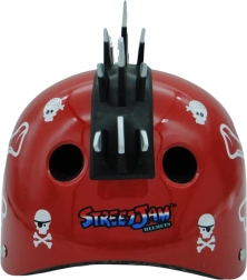 Casque Pirates rouge pour cyclistes, skateurs et amateurs de rollers, offrant une excellente protection. Il dispose de neuf ouïes de ventilation rafraîchissantes et d’une coque polymère renforcée résistante aux chocs.