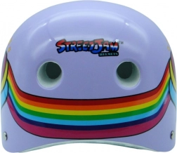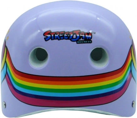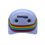Casque violet stylé avec motif licorne pour vélo, skateboard et rollers. Offre 9 aérations, une coque polymère renforcée, une mousse EPS et la certification EN 1078:2027 pour une protection fiable.