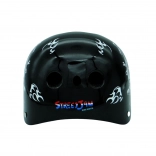 Casque stylé et sûr avec motif tête de mort pour cyclistes, skateurs et adeptes de rollers. Il offre 9 ouvertures d’aération pour une sensation de fraîcheur, une coque renforcée résistante et une mousse EPS pour une absorption fiable des impacts. Conforme à la norme EN 1078:2028. Taille S (52–55 cm).