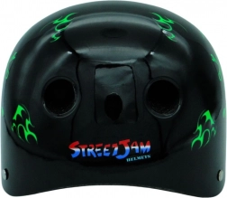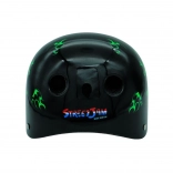 Ce casque polyvalent noir et vert à motif tête de mort est conçu pour le vélo, le skateboard et le roller. Il combine une construction robuste et une ventilation efficace pour un port confortable et sûr au quotidien.