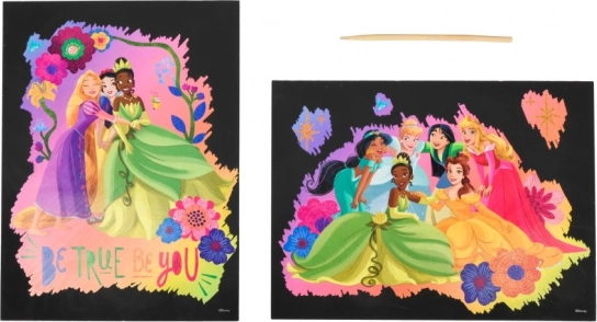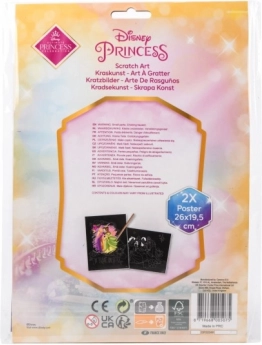 Découvrez un loisir créatif avec les images à gratter Disney Princesses. Le coffret contient 2 planches au format 26 × 19,5 cm et un stylet à gratter pratique pour créer facilement. Idéal comme cadeau pour les petits artistes et les fans des Princesses Disney.