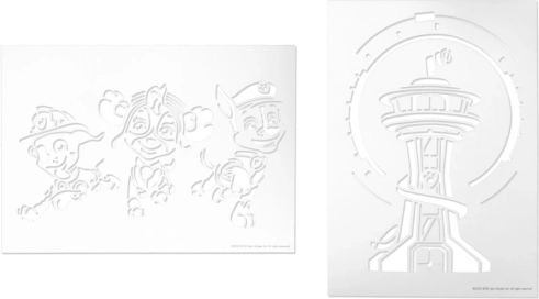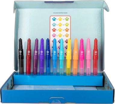 Grâce à une large palette de couleurs et de pochoirs, chaque enfant peut devenir artiste et créer des images selon son imagination.