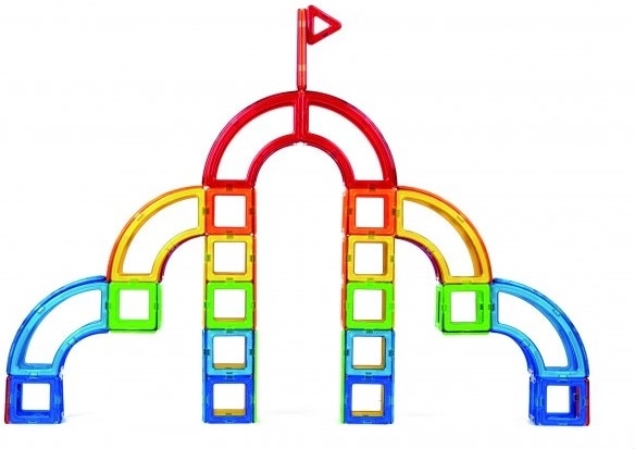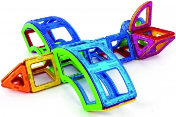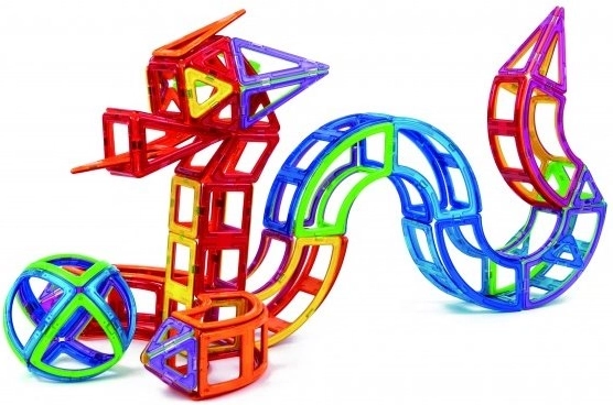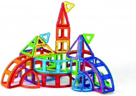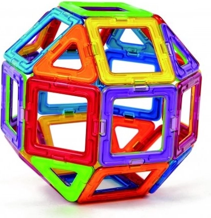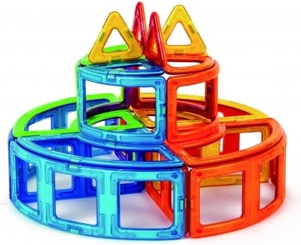 Magformers Creative est un véritable régal pour l’imagination indomptable des enfants comme des adultes. La quantité ainsi que la diversité des couleurs et des formes des pièces offrent un espace de création pour les constructions les plus audacieuses. Grâce à la plus grande proportion des deux types de triangles, cet ensemble convient également au modelage de détails plus fins. Un livret inclus, très bien conçu, vous servira d’inspiration. L’ensemble contient 20 carrés, 12 triangles, 2 pentagones, 4 losanges, 8 triangles allongés, 4 rectangles doubles, 8 secteurs, 4 trapèzes, 8 grands arcs, 4 arcs, 4 rectangles triples et plus encore. Convient aux enfants à partir de 3 ans. Nombre de pièces : 90. La construction magnétique créative Magformers permet d’assembler une grande variété d’objets tridimensionnels à l’aide de polygones en plastique bidimensionnels. Magformers exerce la motricité fine, stimule la créativité, apprend aux enfants les couleurs et les formes géométriques de base. Les dimensions des pièces et les formes judicieusement choisies assurent la sécurité maximale possible du jouet. Le matériau à partir duquel la construction est fabriquée répond aux critères d’hygiène et de santé les plus stricts. Les pièces sont suffisamment grandes, ne peuvent pas être avalées et sont pratiquement incassables. MAGFORMERS peut également être très bien combiné avec la célèbre construction magnétique Geomag.