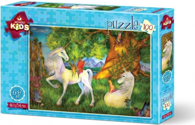 Profitez d’un moment de détente et de plaisir avec ce puzzle de qualité au motif de licornes plein de charme. Grâce à ses 100 pièces solides, il est parfait pour des instants en famille, le développement de la motricité fine et de la pensée logique.