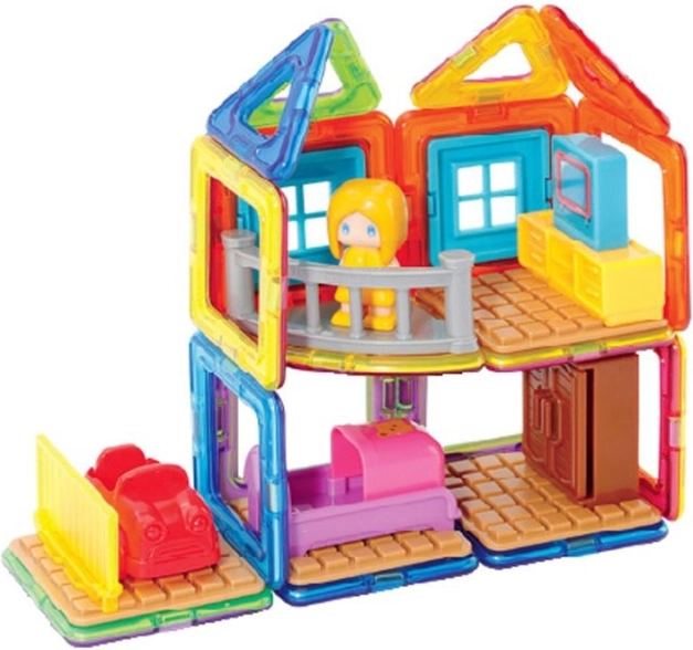 Faites connaissance avec Magda et découvrez sa maison. Ce jeu de construction magnétique créatif permet d’assembler une grande variété d’objets tridimensionnels à l’aide de polygones en plastique bidimensionnels. Magformers développe la motricité fine, stimule la créativité et apprend aux enfants les couleurs et les formes géométriques de base. Les dimensions des pièces et les formes soigneusement choisies garantissent une sécurité maximale du jouet. Le matériau dont est fabriqué le jeu de construction répond aux critères d’hygiène et de santé les plus stricts. Les pièces sont suffisamment grandes, ne peuvent pas être avalées et sont pratiquement incassables. Contenu de l’emballage: