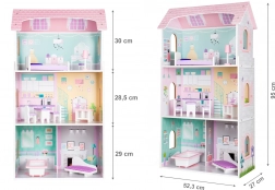 La maison possède trois niveaux indépendants avec quatre pièces, chacune est finie dans un style différent et contient des meubles qui peuvent être reconfigurés. Les chambres ouvertes et spacieuses permettent un jeu sans encombre avec les poupées et attirent les enfants pour de longues heures de plaisir.