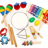 Ce set musical polyvalent ECOTOYS propose dix instruments rythmiques appréciés, pour le plaisir de toute la famille. Les enfants découvrent de nouveaux sons, mélodies et tonalités, développent leur perception auditive et apprennent à coopérer lors des jeux musicaux collectifs.