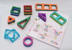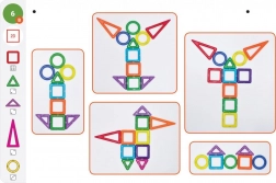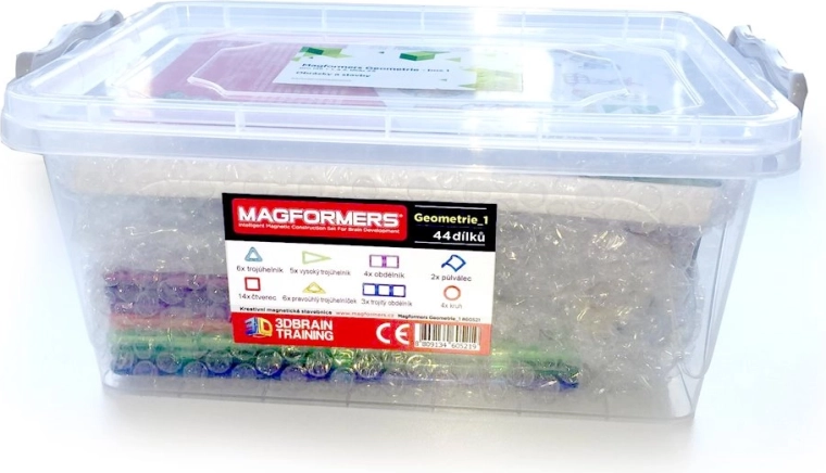 Le Coffret 1 est destiné aux écoles maternelles ainsi qu’aux classes de CP et CE1. L’ensemble Magformers Géométrie Coffret 1 – Images et constructions comprend des cartes pédagogiques illustrées et toutes les pièces nécessaires pour réaliser les activités proposées sur les cartes. Les cartes de travail respectent le contenu des programmes scolaires en vigueur et la terminologie employée est adaptée à leur niveau. Magformers Géométrie est conçu pour développer la prémathématisation dans l’enseignement préscolaire et pour l’enseignement de la géométrie au premier cycle du primaire. Il peut également être utilisé dans le cadre de l’inclusion et pour l’éducation des enfants allophones. Le coffret contient 44 pièces :
