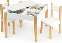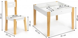 Après le jeu, tous les jouets peuvent être facilement rangés sous le plateau amovible. L'ensemble comprend deux chaises confortables avec des pieds en pin.