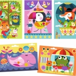 Coffret créatif pour petits explorateurs comprenant 5 grandes cartes à gratter avec des animaux et un stylet en bois double face pour gratter facilement les surfaces et les détails. Idéal dès 18 mois, développe la motricité fine, la patience et la joie de créer.