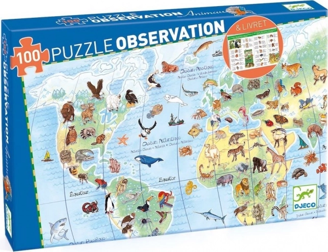 Découvrez le monde avec le puzzle pour enfants DJECO Observation, qui allie le plaisir d’assembler à la découverte de la nature. Sur la grande image, les enfants retrouvent des animaux de tous les continents et, grâce à la brochure incluse, enrichissent leurs connaissances. Ce puzzle de 100 pièces mesure une fois assemblé env. 63 × 45 cm et favorise la pensée logique, la patience et la motricité fine.
