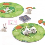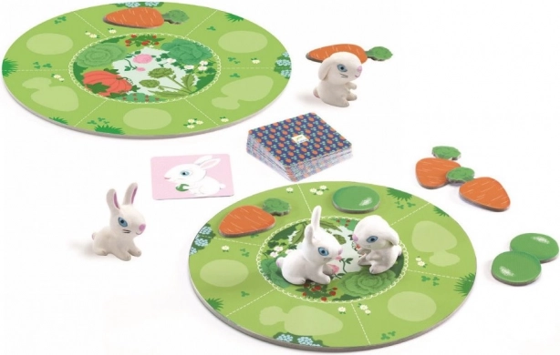 Petite récolte de DJECO est un premier jeu de société idéal pour les jeunes enfants. Les joueurs essaient de collecter 3 lapins, 3 jetons carotte et 3 jetons petit pois, tout en se méfiant du renard. Le jeu développe la motricité fine, le comptage et la patience, tout en favorisant la coopération et le respect des règles.