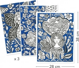 Le set contient 3 motifs artistiques d’environ 28 × 38 cm, prêts à devenir une décoration originale une fois colorés.