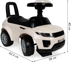 Léger et robuste, le porteur voiture est un compagnon idéal pour les premières virées autonomes à la maison comme au jardin. Grâce à sa construction stable et à son angle de braquage limité, la conduite est intuitive et sûre, même pour les plus petits. Le volant avec sons (mélodies et klaxon) motive le jeu actif et développe l’ouïe ainsi que la motricité.