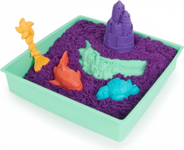 Inclus : 454 g de sable violet, une pelle et divers moules pour châteaux et animaux marins. Le plateau maintient tout ensemble pour un rangement facile.