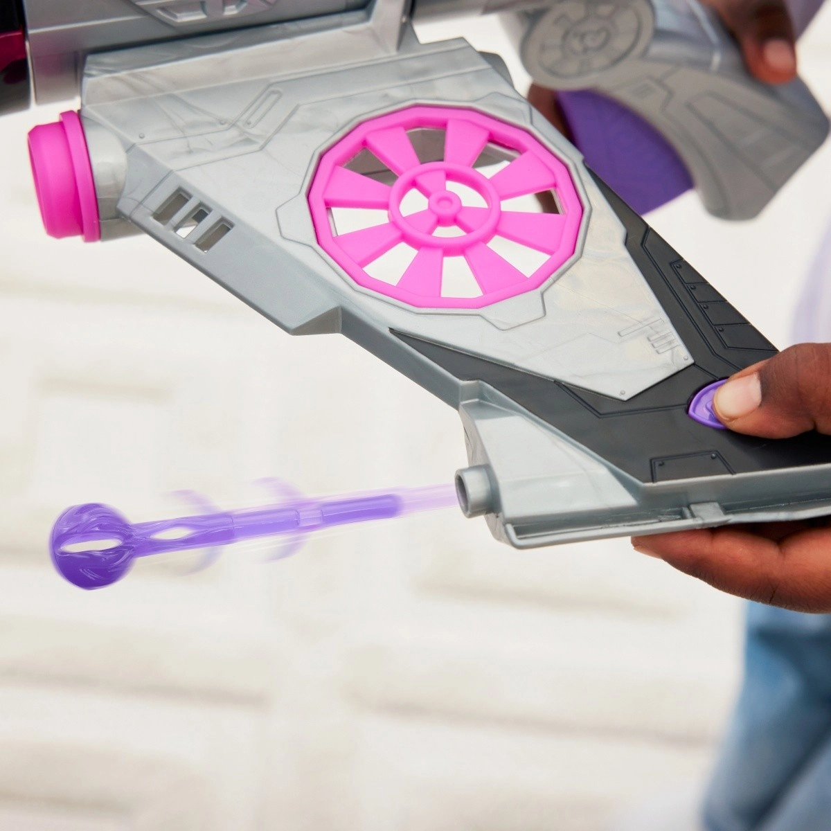 Vivez l’action comme au cinéma avec l’avion interactif de Skye tiré de Pat' Patrouille : Le Film. Une fois la figurine installée dans le cockpit, des parties de l’avion ainsi que Skye s’illuminent, la musique et les effets sonores se déclenchent, et les enfants peuvent partir immédiatement en mission. Grâce à la poignée ergonomique, l’avion s’incline vers le haut, le bas et sur les côtés, déclenchant d’autres réactions sonores.