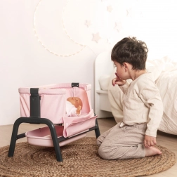 Élégant lit rose pour poupées de la marque SMOBY au design Maxi-Cosi Quinny, idéal pour les poupées jusqu’à 38 cm. Il offre 4 niveaux de réglage en hauteur, une structure stable à 4 pieds et un espace de rangement pratique sous le lit. Grâce à ses bords arrondis et à des matériaux résistants et faciles à nettoyer, il est parfait pour le jeu quotidien et les soins du “bébé”.