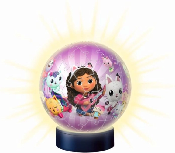 Le puzzleball 3D lumineux de l’édition Nachtlicht ravira tous les fans, petits et grands, des puzzles et de l’univers de la Maison magique de Gabby. Vous pouvez assembler en suivant l’image ou les numéros au dos des pièces – idéal pour développer la patience, la motricité fine et la perception spatiale.