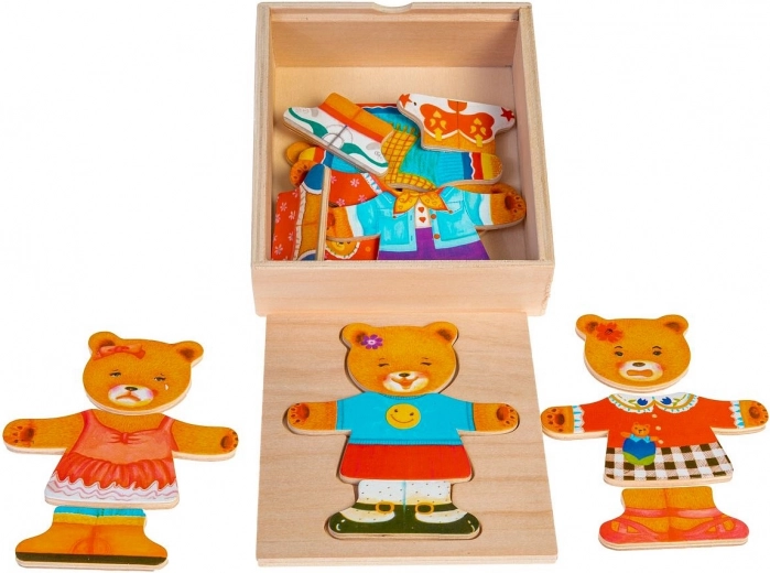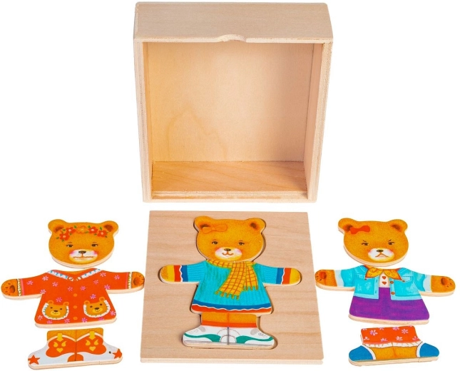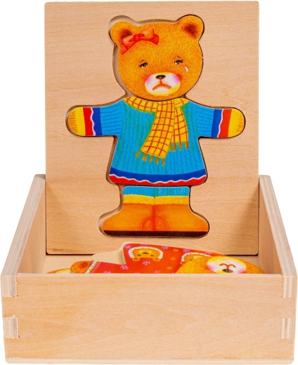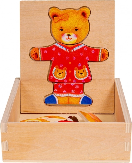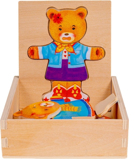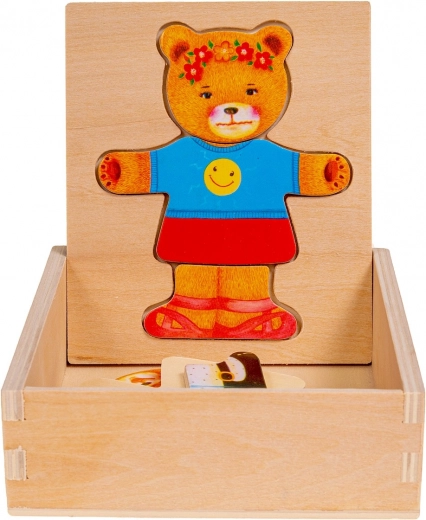 Avec le puzzle, vous pouvez changer les vêtements et l'humeur de l'ourson fille, stimulant ainsi la créativité et l'imagination des enfants.