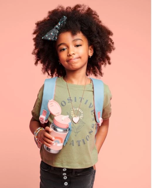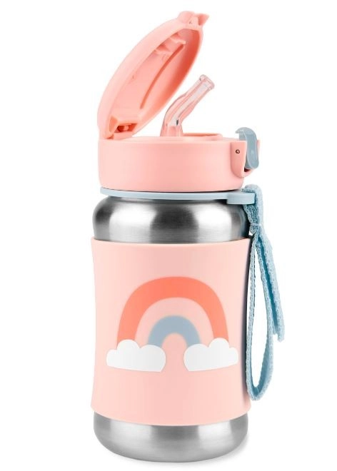 Gourde en acier inoxydable avec de superbes motifs qui apportent une étincelle aux petites personnalités et aident à garder les boissons fraîches en déplacement. Le couvercle rétractable maintient la paille souple propre et la gaine en silicone antidérapante protège les petites mains du froid de la surface.