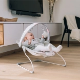 Cadre métallique solide, harnais 3 points et arche amovible avec jouets allient sécurité, confort et style moderne.