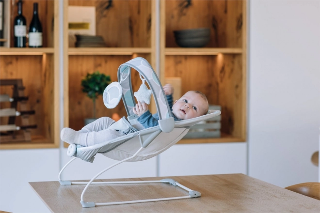 Cadre métallique solide, harnais 3 points et arche amovible avec jouets allient sécurité, confort et style moderne.