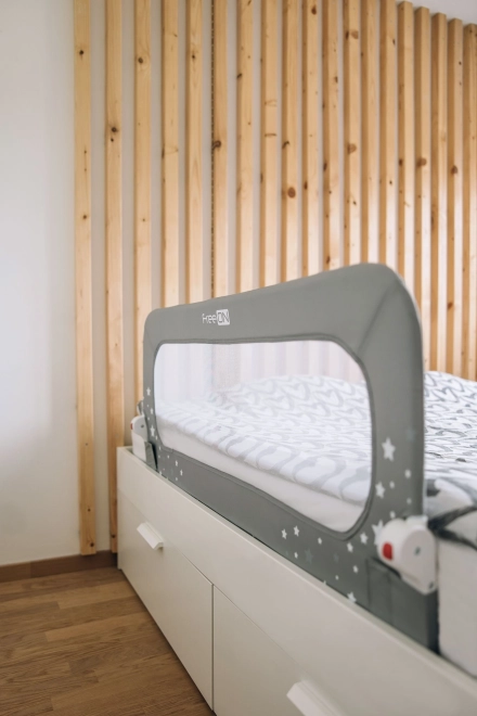 La barrière de lit FreeON Étoiles offre une protection fiable contre les chutes pendant le sommeil. Grâce à sa structure rabattable à 180°, sa maille aérée et sa fixation facile sous le matelas, elle est le choix idéal pour un sommeil serein des enfants.