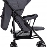 Pour la sécurité et le confort de l’enfant, la poussette est équipée d’un harnais rembourré à 5 points, d’un dossier réglable avec maille pour une meilleure ventilation et d’un repose-pieds réglable. La grande capote avec fenêtre protège du soleil et du vent, tandis que l’arceau de sécurité et le panier de rangement spacieux améliorent le confort lors des déplacements quotidiens.