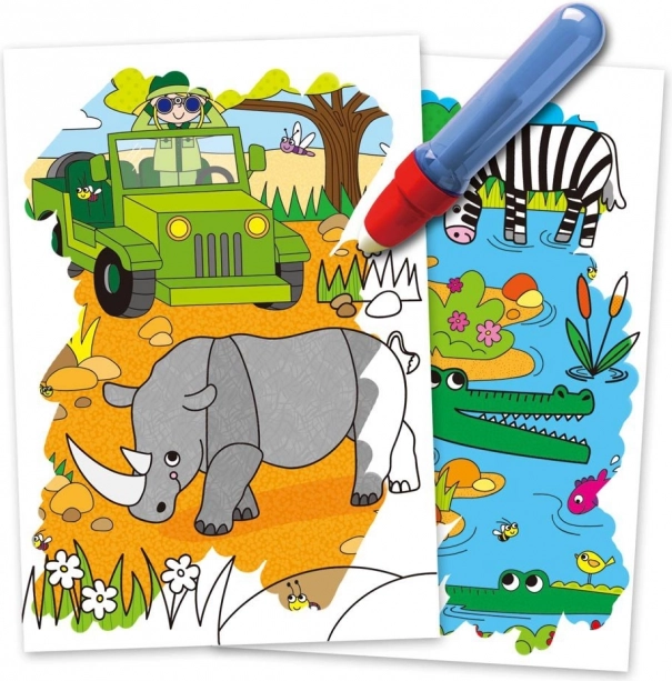 Galt Peinture à l’eau Safari : création propre et réutilisable avec de l’eau. 6 images reliées à spirale et stylo magique. Idéal pour les enfants dès 3 ans.