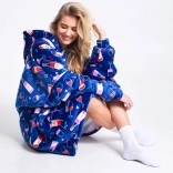 Cette couverture-hoodie Cozy Noxxiez se distingue par une matière exceptionnellement agréable : l’extérieur en flanelle douce et l’intérieur en sherpa fleece duveteux assurent un confort maximal et une chaleur sans surchauffe. La coupe universelle, longueur genoux (95 cm), tour de poitrine généreux (170 cm) et manches de 50 cm, n’entrave pas les mouvements et convient aux adolescents comme aux adultes.