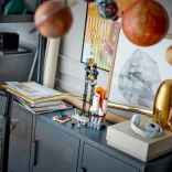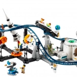Le set LEGO Creator 3-en-1 Montagnes russes spatiales offre aux enfants de 9 ans et plus une super dose de créativité. Trois wagonnets filent sur la piste bleue entre une fusée, des modèles de Saturne et de la Terre, une base lunaire et une étoile filante. L’ambiance est renforcée par une météorite avec brick lumineux, que l’on peut allumer pour un effet encore plus impressionnant.