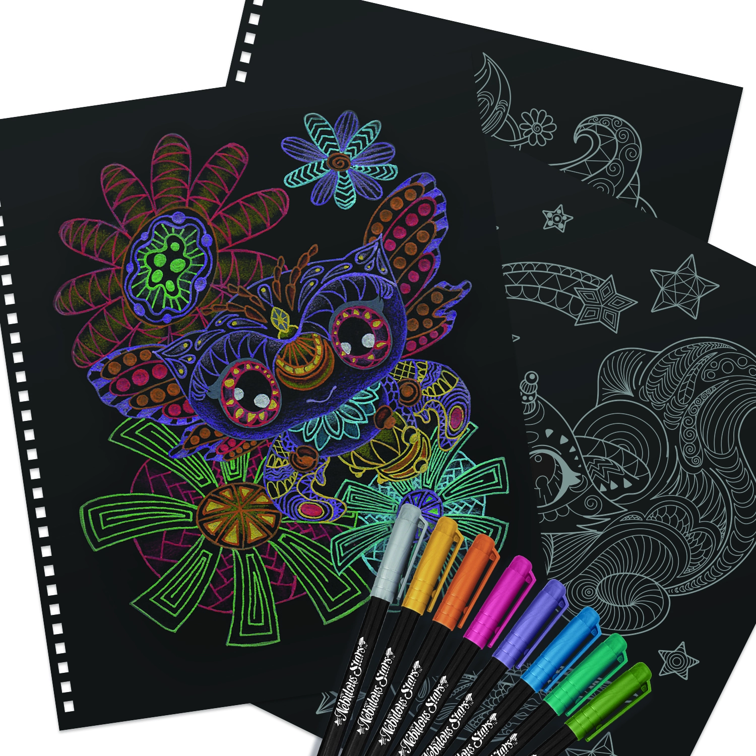 Les feuilles noires avec des contours détaillés d’animaux et de thèmes fantastiques facilitent le coloriage sans besoin d’esquisser. Idéal pour démarrer vite et se détendre.